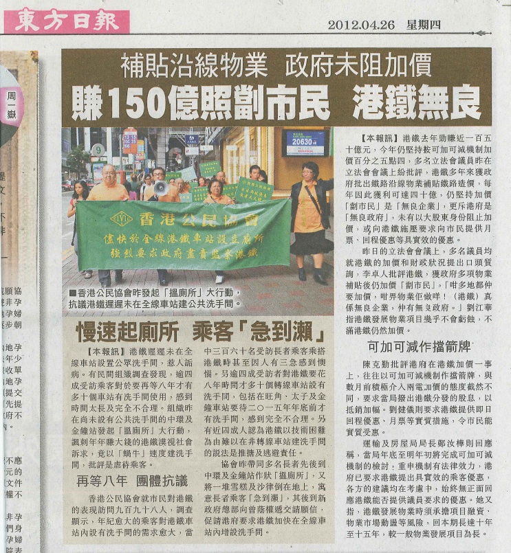 港鐵交通習慣專案系列: 2012年 巿民對港鐵交通習慣及設施需求 問卷調查結果及分析