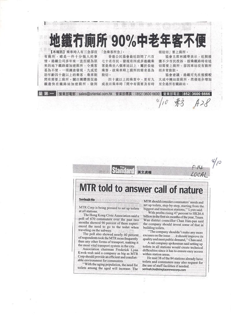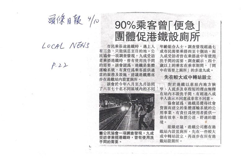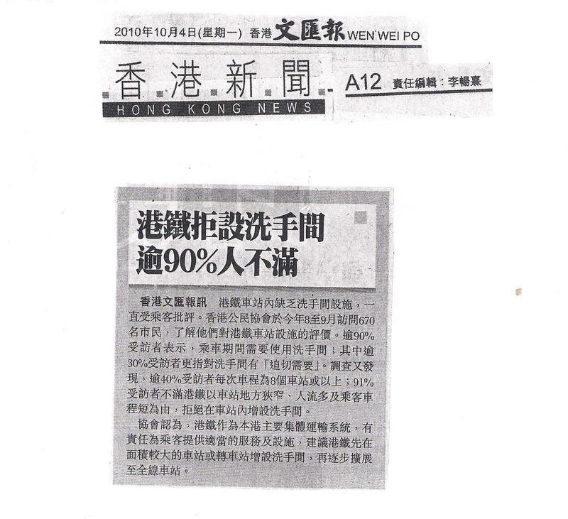 2010年 「香港地鐵交通習慣及設施需求調查結果」